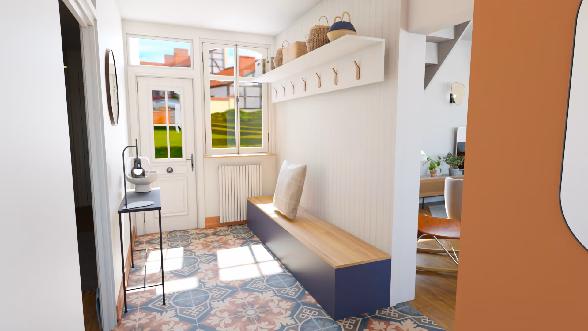 Rénovation du rez de chaussée. Repenser les espaces de la suite parentale, aménager et décorer la pièce de vie et organiser l’espace entrée.