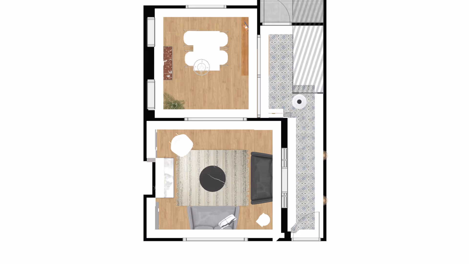 Notre cliente avait des envies de lumière et d’ouverture mais les contraintes techniques étaient nombreuses. C’est finalement après plusieurs échanges que nous sommes tombés d’accord sur une proposition alliant optimisation de l’espace circulation de la lumière et mise en valeur de l’espace.